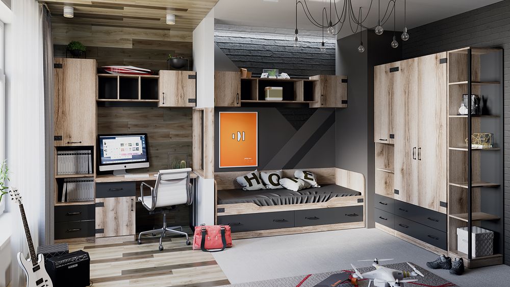 Кровать двухъярусная Окланд ТД-324.11.01 Фон Черный/Дуб Делано