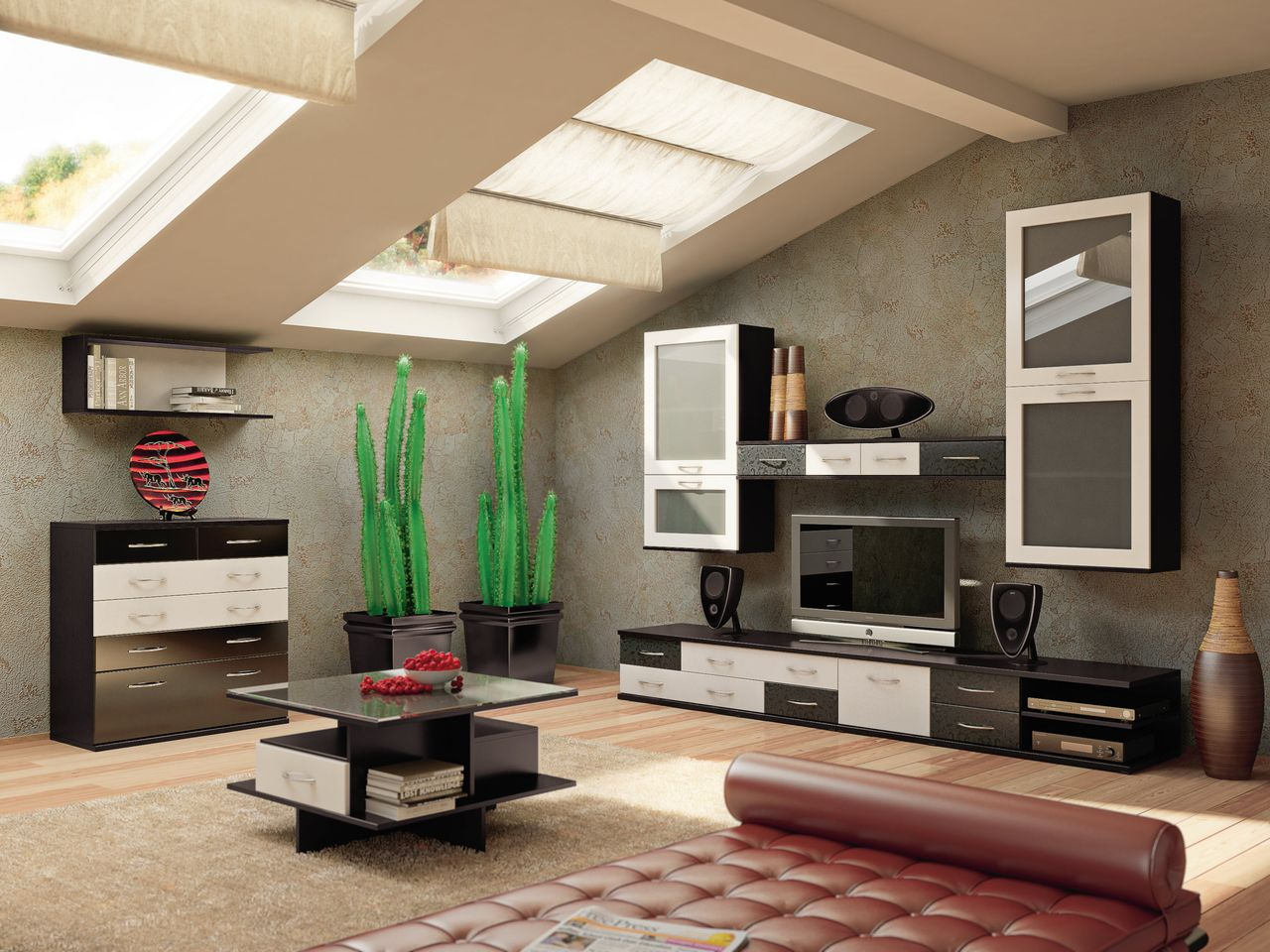 Новая модульная система в стиле модерн. Благодаря эргономичным элементам — ваша комната обретет не только эстетичный вид, но и практичность. Обратите внимание на фасады, выполняются с тиснением в виде абстрактного рисунка. Некоторые фасады однотонные с эффектом глянца.