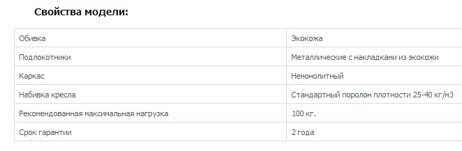 | Обивка подлокотников | Экокожа |