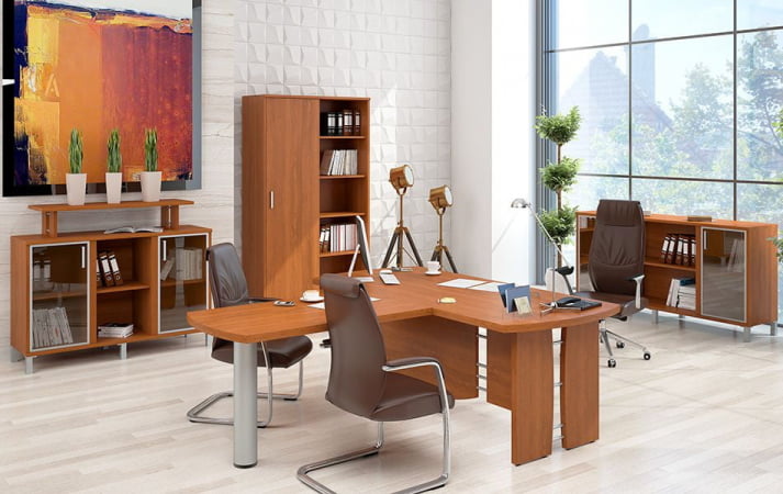 Стеллаж-купе с дверью ДСП – это солидный большой шкаф, в котором можно хранить большое количество папок с документами и другой офисный скарб. В нем удастся все аккуратно разложить и спрятать от посторонних глаз. Такой способ хранения позволяет держать в порядке офисное имущество и содержать в чистоте сам офис. Модель не только практична, но и престижна, роскошно смотрится в интерьере.