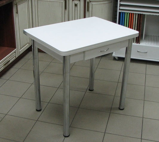 Столешница: ЛДСП. Размер в собранном виде: 600 х 800 мм, разложенном виде: 800 х 1200 мм, высота: 750 мм. Ящик выдвижной. Ножки - металл, хром.