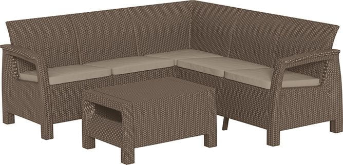 Удобный комплект мебели из искусственного ротанга производства фирмы KETER Group. Широкий диван позволяет поместится большому количеству людей, а высокие спинки мебели создают прекрасные условия для отдыха на открытом воздухе.
